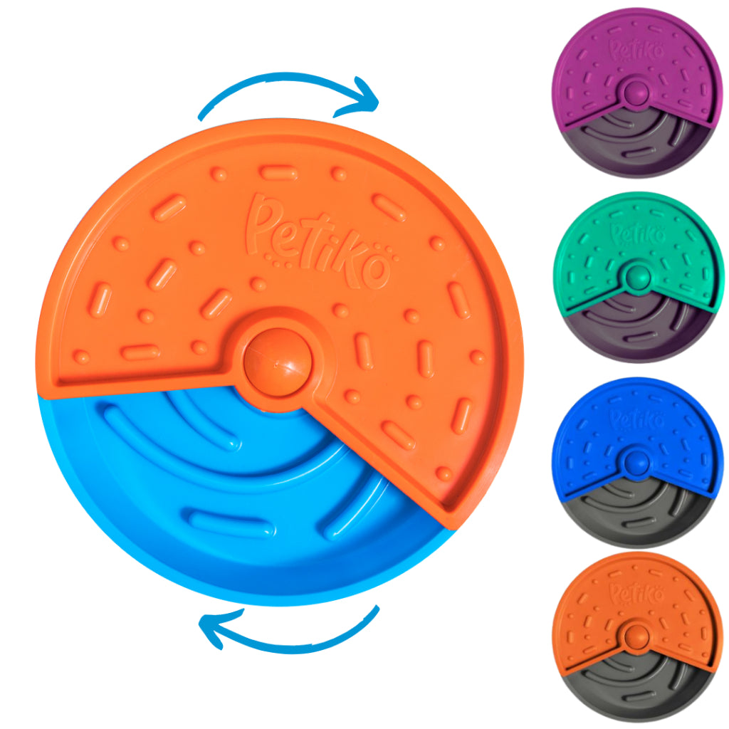 O comedouro interativo Gira Gira proporciona mais diversão e bem-estar à alimentação dos pets. - Desenvolvido por especialistas em nutrição e diversão canina e felina; - Ideal para todas as fases da vida; - Estimula o enriquecimento ambiental; - Reduz o tédio, o estresse e a ansiedade; - Produto exclusivo Petiko. - Medidas: diâmetro de 20,5 cm **COMO USAR**: Enquanto na base fixa você pode colocar alimentos secos, a peça móvel é ideal para adicionar alimentos úmidos. **COMO MONTAR**: Encaixe a peça móvel sobre o pino na região central da base do comedouro. Coloque a trava sobre o furo da peça móvel e empurre até estar totalmente travado. **HIGIENIZAÇÃO**: Após a brincadeira, higienize o produto com água e sabão neutro.