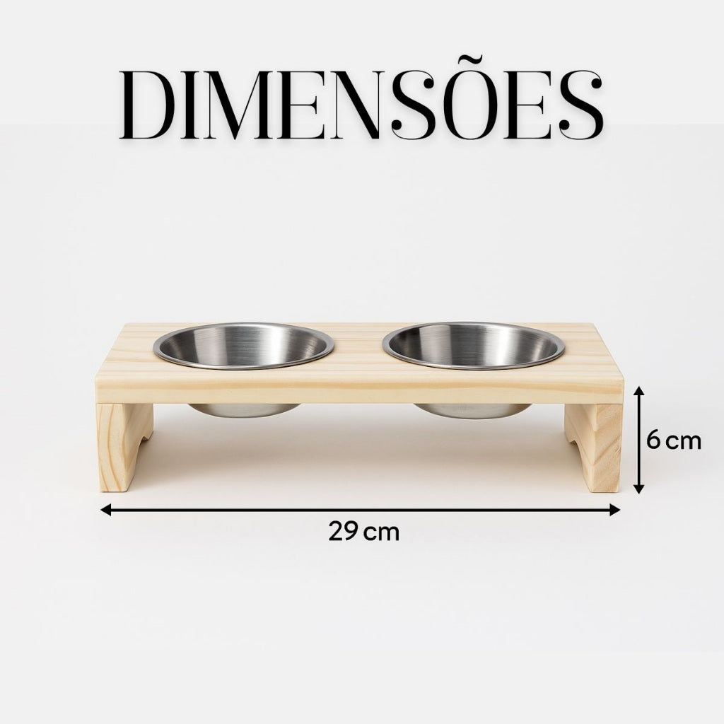 Comedouro e Bebedouro para Animais de Pequeno Porte (Cães e Gatos) Benefícios do Produto Design compacto e funcional para otimizar o espaço. Ideal para cães e gatos de pequeno porte. Fácil de limpar e manter graças aos potes de alumínio removíveis. Feito com madeira de pinus, conferindo durabilidade e estilo. Medidas: -Comedouro Duplo Comprimento: 27 cm Largura: 12 cm Altura: 7 cm Capacidade do Pote de Alumínio: 200 ml -Comedouro Individual Comprimento: 14,5cm Largura: 13cm Altura: 7cm Observação Material: Madeira de pinus e potes de alumínio. Indicado para animais de pequeno porte, como cães e gatos. Saudações Obrigado por considerar nosso produto! Se precisar de mais informações ou suporte, estamos à disposição.